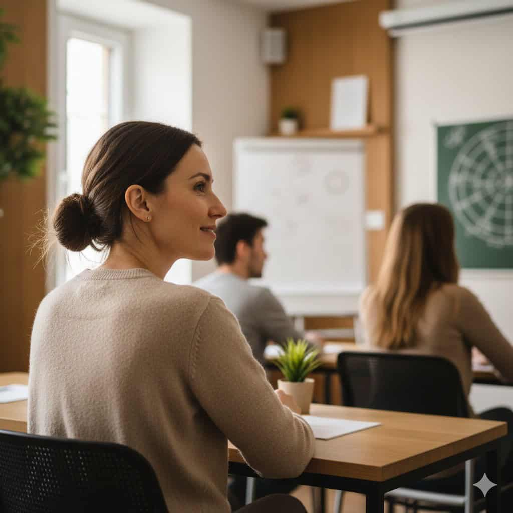 “Der Astrologieunterricht bei Fabienne war eine wirklich tolle Erfahrung. Sie unterrichtet mit Leidenschaft, Klarheit und großem Wohlwollen, was jede Sitzung sowohl bereichernd als auch angenehm macht. Ich habe sehr viel gelernt und fühlte mich während des gesamten Kurses begleitet. Eine außergewöhnliche Astrologin, die ich wärmstens empfehlen kann”.”